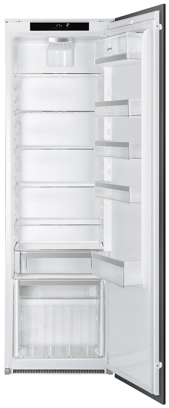 Встраиваемый холодильник SMEG S8L1743E предназначен для кратковременного хранения различных готовых блюд, охлаждённых продуктов и напитков. Полки на дверце пластиковые, с металлической окантовкой, полки внутри холодильной камеры из закалённого стекла, благодаря чему выдерживают большую нагрузку. Данная модель идеально подходит для встраивания в объёмный гарнитур на просторной кухне.