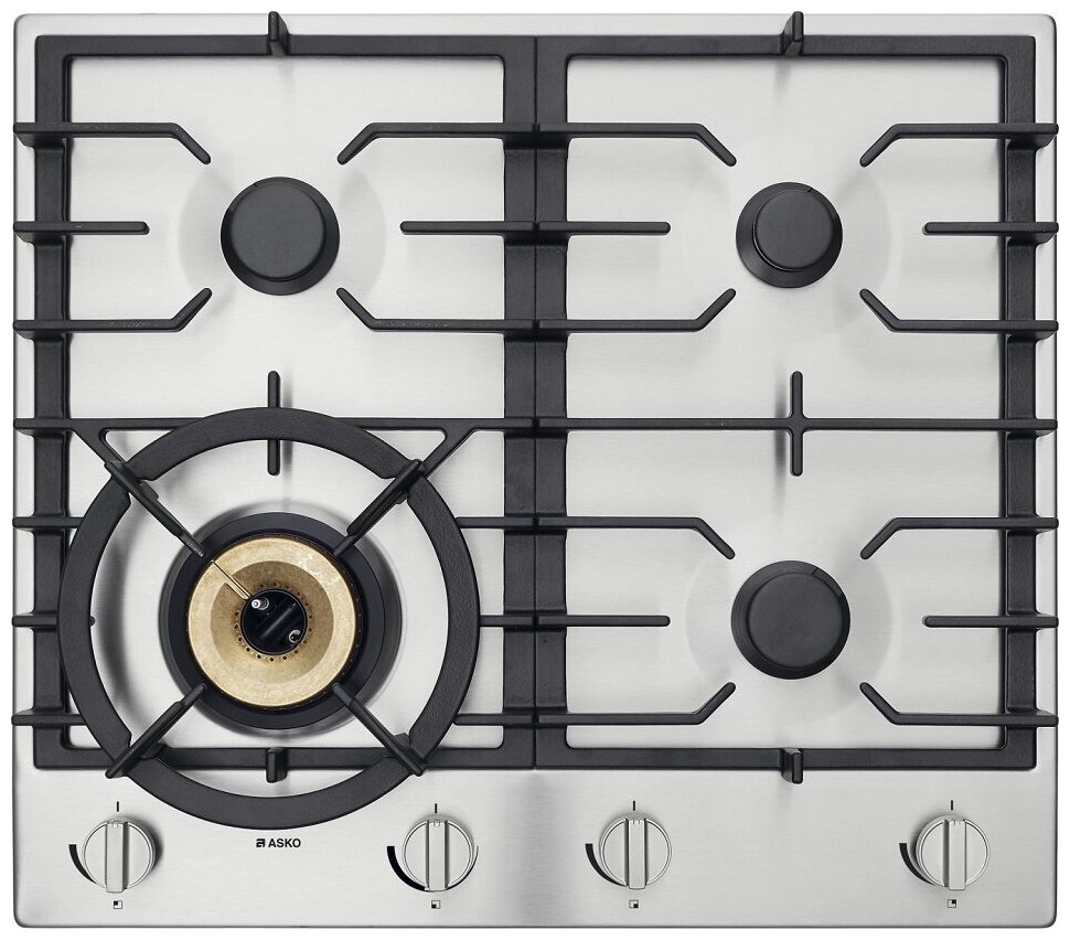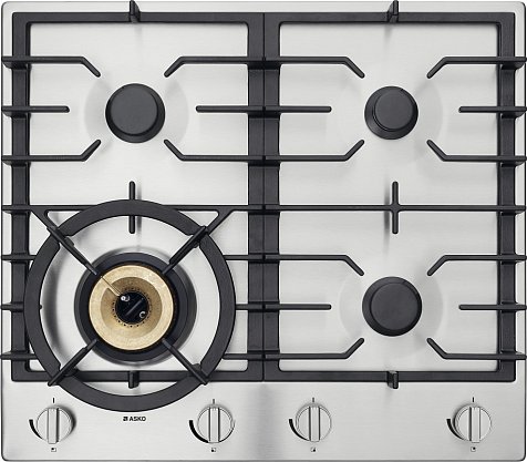 Поворотные устройства управления расположены равномерно по всей ширине варочной панели Аско HG1666SB, чтобы исключить риск соприкосновения с горячей посудой. Включение и управление газом осуществляется механическими поворотными ручками. Для приготовления блюд оборудование располагает 4 конфорками — одна мощностью 1 кВт, две мощностью 2 кВт и одна 4,2кВт. Последняя из них обладает тремя кольцами пламени. Вы сможете создать атмосферу ресторана на домашней кухне и готовить блюда азиатской кухни в специальных сковородах-вок, использовать казан и другую посуду с толстыми стенками.