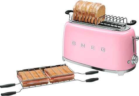Тостер SMEG TSF02PKEU, выполненный в стиле 50-х годов, подчеркнёт индивидуальность интерьера и станет настоящим украшением Вашей кухни в квартире или загородном доме. Предназначен для обжаривания кусочков хлеба, размораживания и подогрева булочек, а также для приготовления традиционного еврейского хлеба. Корпус изготовлен из нержавеющей стали.